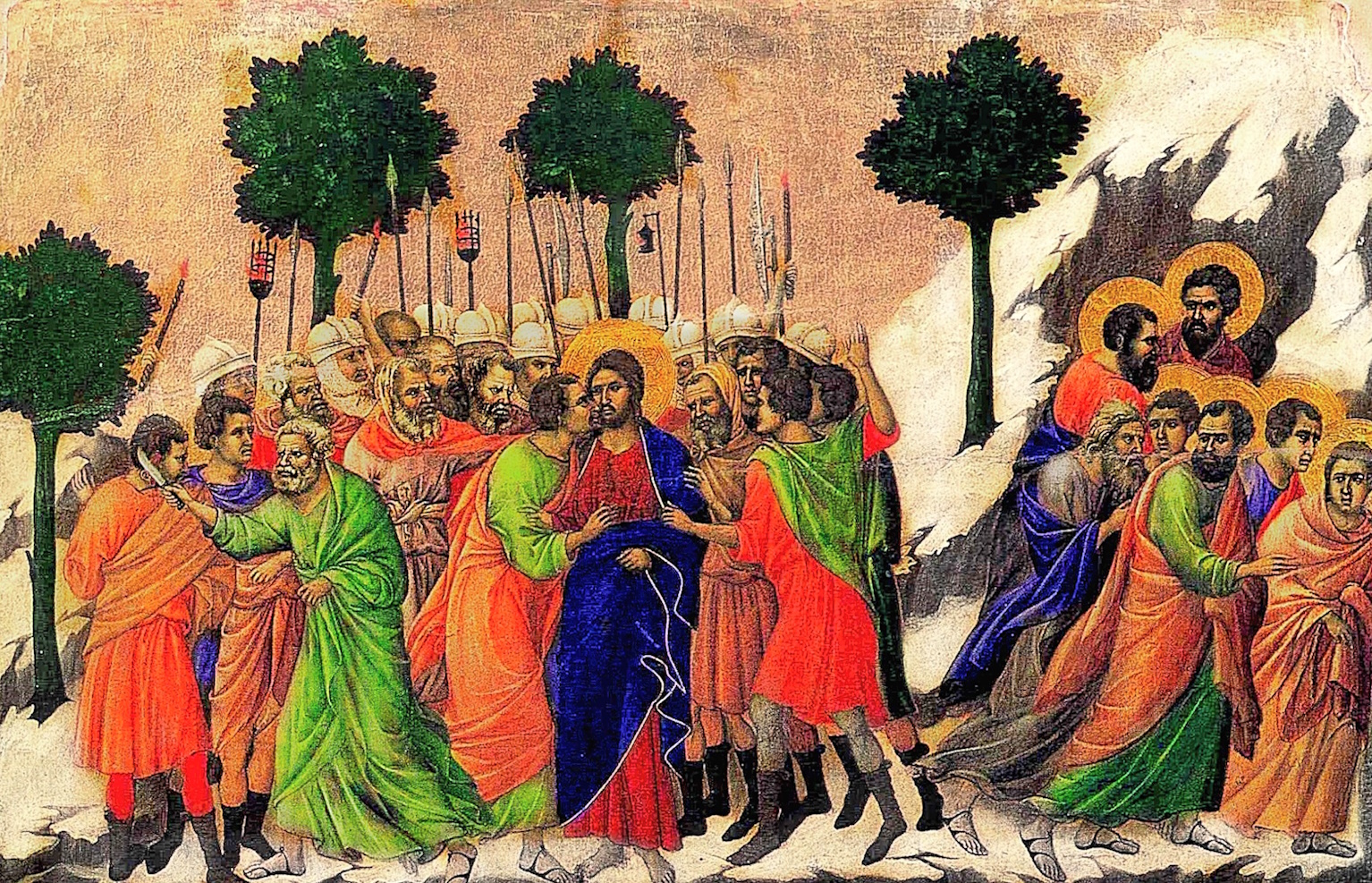 - Historiadores narraram que durante numa noite de sexta-feira, logo a após a ceia pascal, durante uma noite de lua cheia que antecedia o Sábado, Nosso Senhor Jesus e seus discípulos foram para o sopé do Monte das Oliveiras, no local conhecido como Jardim de Getsêmani. Horas depois uma comitiva escoltada por soldados contratados da pelo Sumo Sacerdote Jose Caifas, sua guarda privada, caminharam em direção ao jardim de Getsêmani com tochas para efetuar a prisão de Nosso Senhor Jesus.