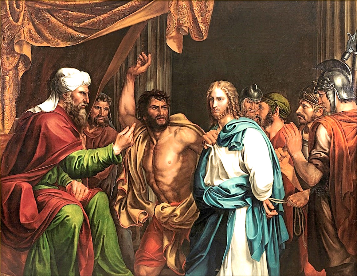 - O Sumo Sacerdote Caifas, após ver suas acusações fracassadas e preste a expor sua missão secreta de conspirar contra a vida de Nosso Senhor Jesus, deixa seu trono de Supremo Juiz e vai ate a presença de Nosso Senhor Jesus e o força a testemunhar debaixo de juramento, porque sabia que Ele próprio, Nosso Senhor Jesus o auto incriminaria.