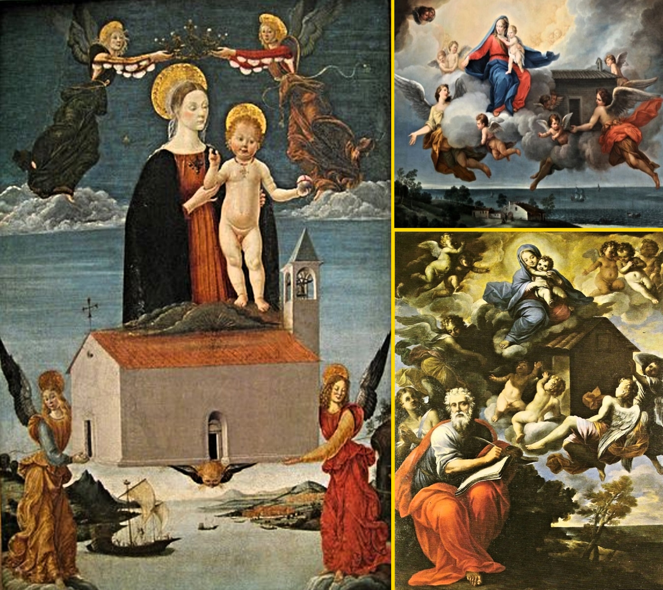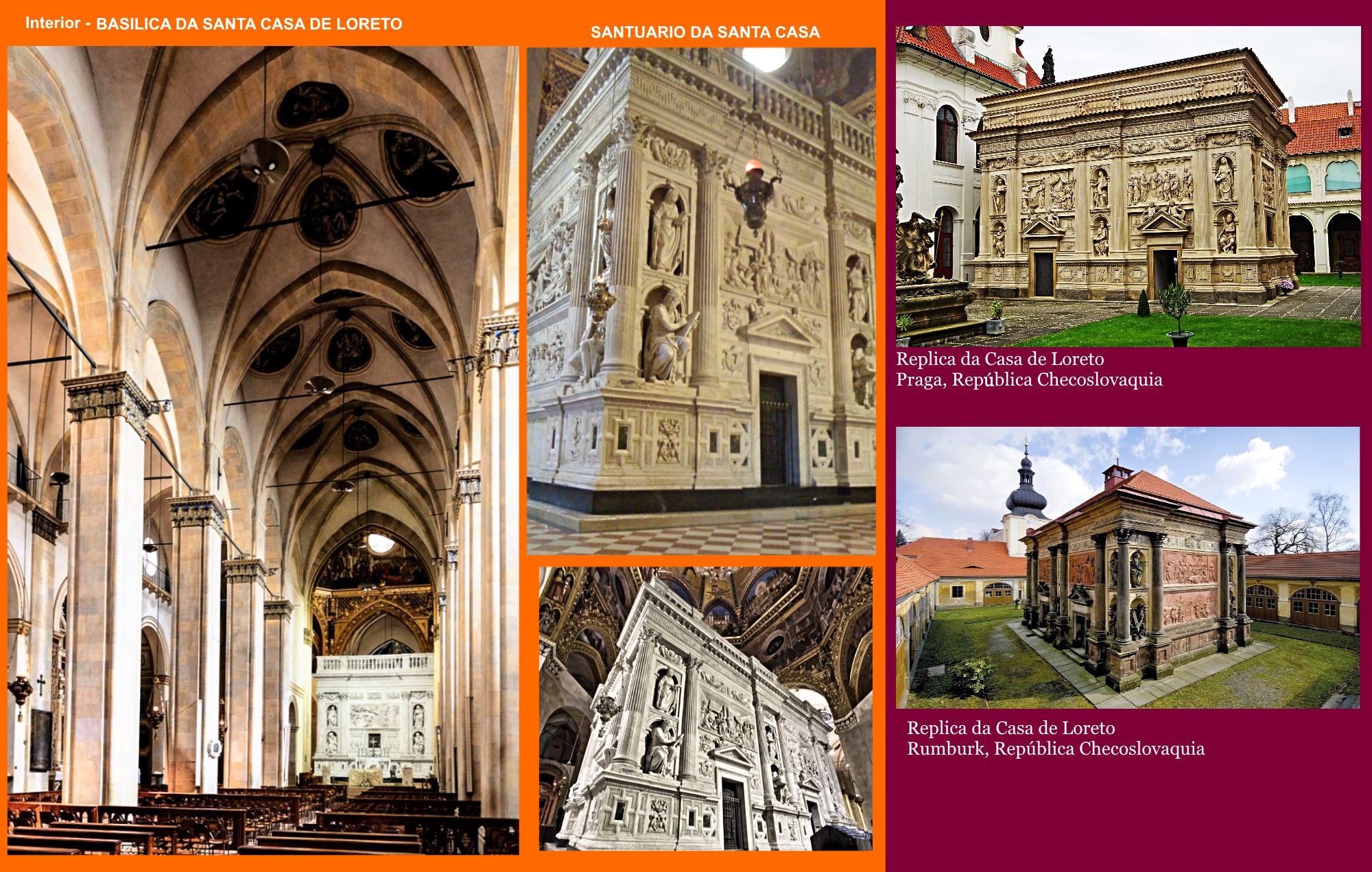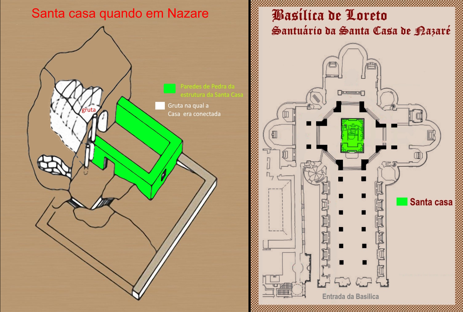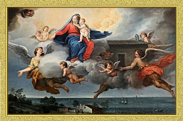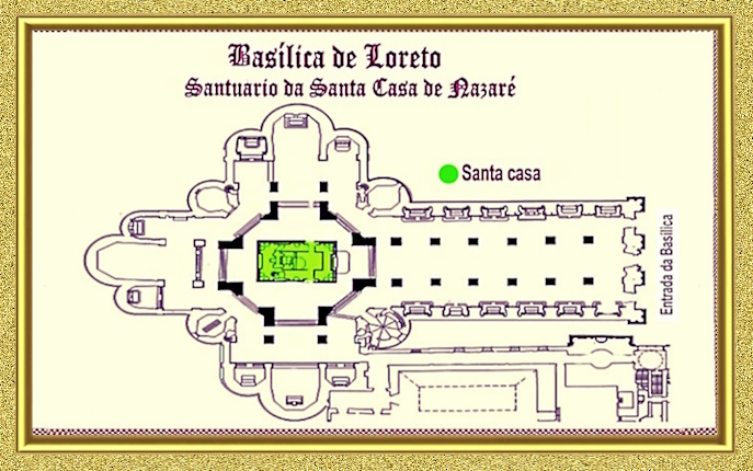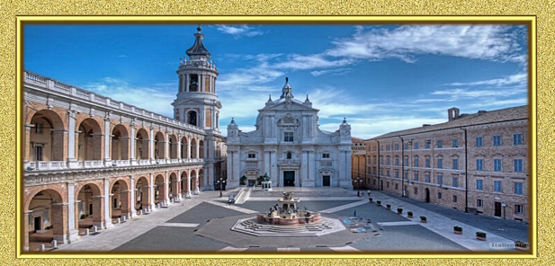 Cidade de Loreto – Itáli a, conhecida como Santa Casa de Loreto ou Santuário da Santa Casa. Hoje encontra-se edificada a Basílica de Loreto que abriga o antigo Santuário da Santa Casa de Nazaré. A grande Basílica situado no topo do monte, com uma imensa cúpula, hoje é o maior tesouro dos Papas fora do território da Cidade do Vaticano, a mais preciosa relíquia da humanidade. A mais sagrada e importante de todos os Santuários de Nossa Senhora, a Casa da Sagrada Família – Santa Casa de Loreto, onde esta escrito na gigantesca porta da Basílica as seguintes palavras: " O mundo inteiro não tem lugar mais sagrado ... Por aqui era o Verbo foi feito carne, e aqui nasceu a Virgem Mãe."