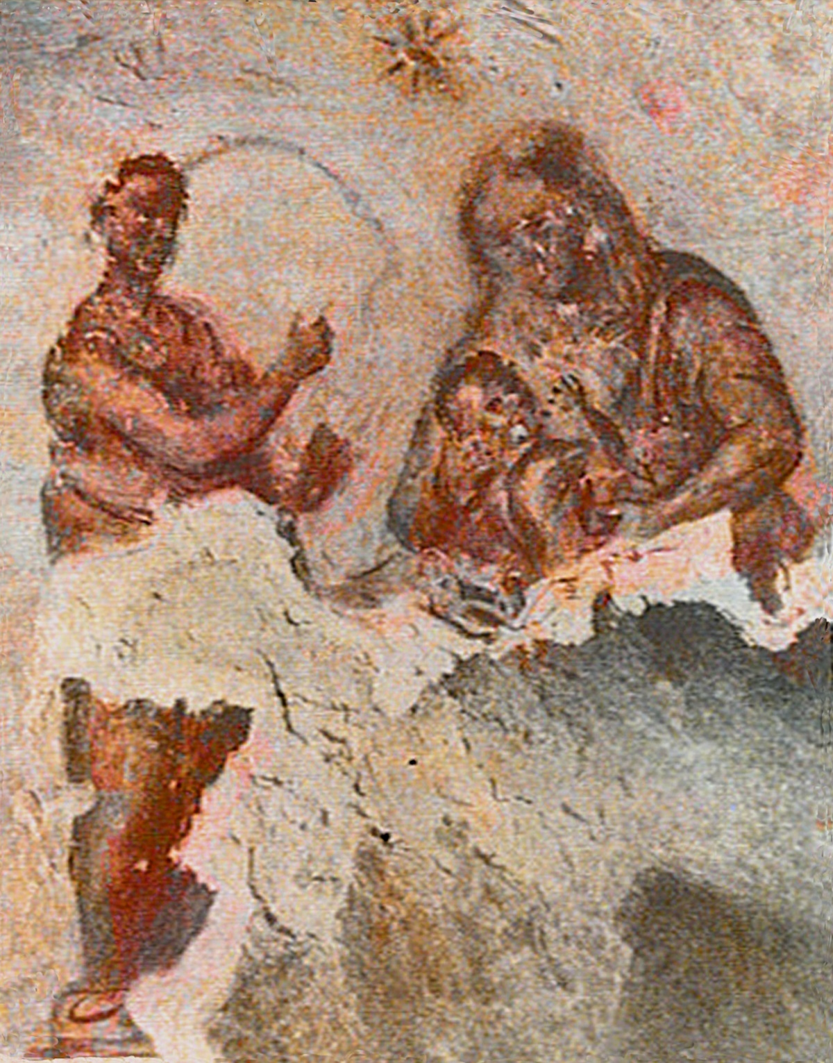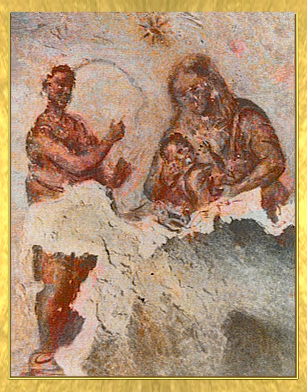 Catacumba do cemitério de Santa Priscila na Via Salária em Roma. Á mais antiga representação conhecida da veneração a Virgem Maria, datada de meados do século II