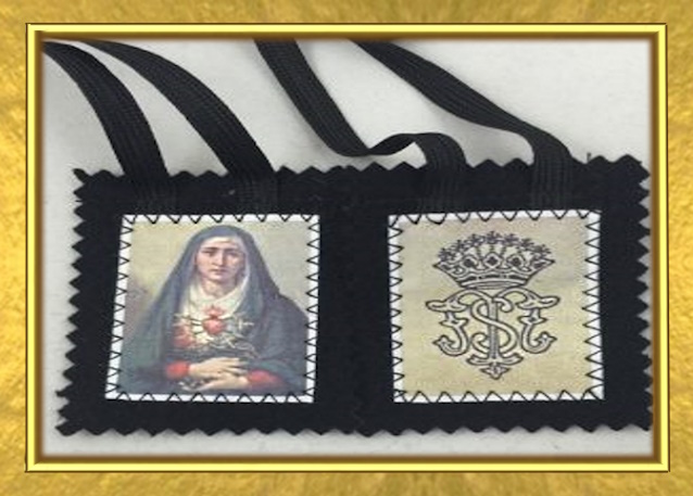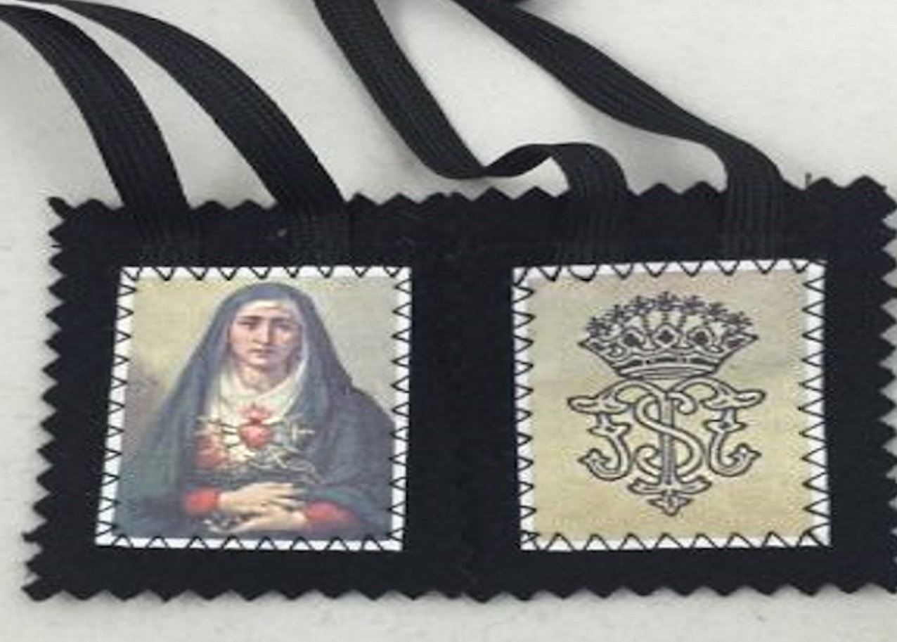 Ordem dos Servitas (Servos de Maria) em 1255 o Papa Alexandre IV, aprovou a Ordem seguidores e um grande numero de seguidores. O escapulário e preto, na frente imagem de Nossa Senhora das Dores.