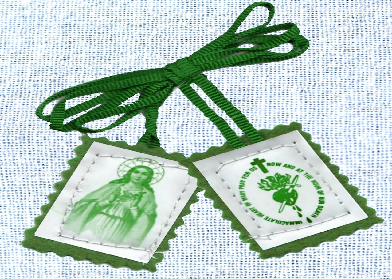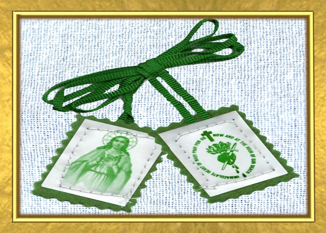 Geralmente confundido com o Escapulário Verde do Imaculado Coração de Maria, feito de um tecido verde, na frente com imagem do coração de Maria ardendo como chamas de fogo, perfurado por uma espada pingando sangue ( sem a coroa de rosas ), com uma Cruz, cravada com a seguinte frase: " Coração Imaculado de Maria, rogai por nós, agora e na nossa hora da morte. ” e no reverso imagem de Nossa Senhora com seu Imaculado Coração radiante. Aprovado pelo Papa Pio IX em 1863 e novamente em 1870.